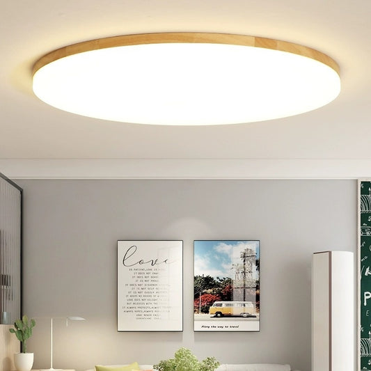 Nordic Style Living Room Simple Modern Ultra-thin Led Round Solid Wood Ceiling Lamp