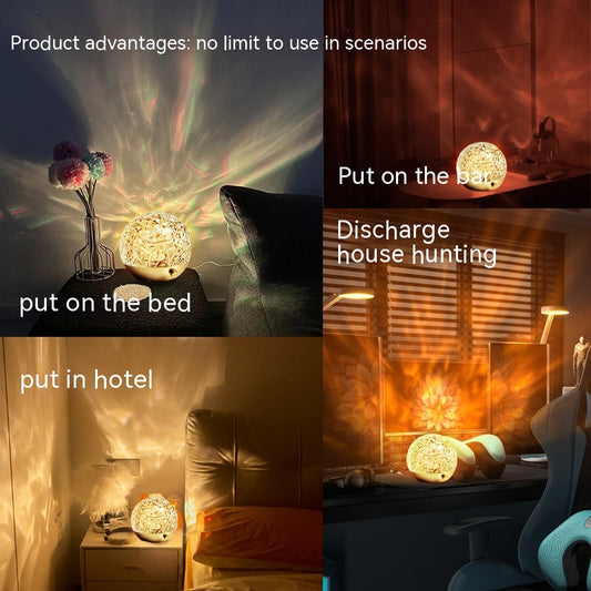 New Water Ripple Projector Night Light Crystal Mood Lamp Bedside Home Bedroom Decoration Aesthetic Christmas Gift Sunset Lights