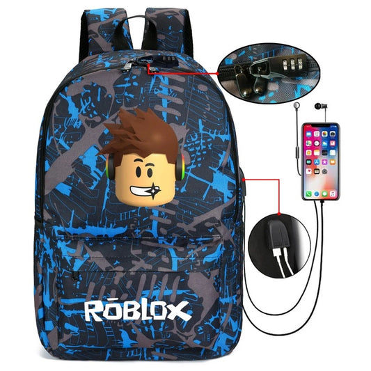 Printed LOGO Backpack Student School Bag USB Charging Backpack