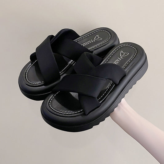 Thick-soled Clip Toe Flat Slippers Outdoor Summer Casual Solid Color Slides Shoes For Women