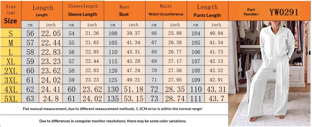 Women’s Sweatshirt Set – Casual Pullover V-neck Top with Loose Pants
